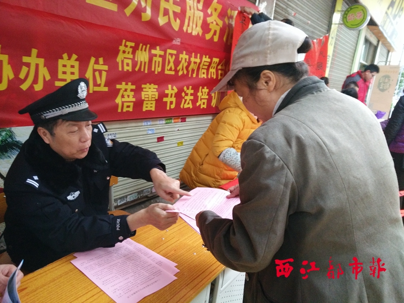 ????西江都市報訊 (記者 蒙敏瑩 通訊員 曾健梅 莫靖雯) 臨近年關(guān),盜竊、詐騙等侵財性案件較為多發(fā),為提高群眾安全防范意識,1月28日,下三云社區(qū)聯(lián)合“雙報到”單位梧州市委政研室、三云派出所和梧州市國家安全局,在下三云路新中山超市旁向市民宣傳安全防范知識,提醒市民春節(jié)期間注意增強防范意識。