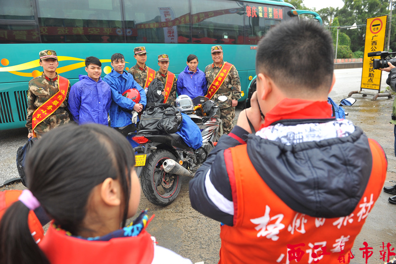 ??? 當天,十名梧州日報社優秀小記者代表成為“春運服務志愿者”,與梧州邊防檢查站的武警官兵一起,為路過的返鄉旅客送去溫暖和祝福。?本報記者?何鎏/攝