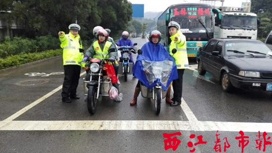 ????西江都市報(bào)訊 (記者 楊珊 通訊員 陳家龍 吳嘉欣) 今年春運(yùn)開(kāi)始以來(lái),梧州市持續(xù)出現(xiàn)低溫陰雨天氣。為確保“摩托大軍”安全過(guò)境返鄉(xiāng),梧州市交警部門(mén)在車(chē)流密集的321國(guó)道設(shè)置了一條長(zhǎng)20公里的愛(ài)心通道,并配備流動(dòng)服務(wù)車(chē),讓“摩托大軍”可以在專(zhuān)用車(chē)道內(nèi)行駛,在有需要時(shí)能及時(shí)得到幫助。