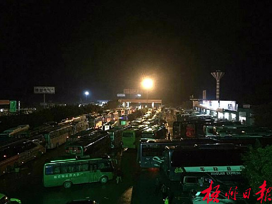 ????今年,我市公安交警等部門繼續執行上級出臺的凌晨2時至5時大客車禁行政策。執勤民警介紹,1月31日凌晨過后,一輛輛長途客運班車陸續進入蒼郁高速公路大坡服務區停車休息,至2時許,本來只能容納50輛大型客車的服務區停靠了近100輛,把服務區和輔道全部塞滿,停車休息的乘客4500多人。
