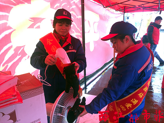 ????就在“摩托大軍”休息放松時,來自中石化梧州石油分公司的區(qū)級勞模李金蘭正在一旁忙碌著。她麻利地拿起吹風(fēng)機(jī),逐一吹干“摩托大軍”遞來的濕淋淋的手套。“這個吹風(fēng)機(jī)是我們昨天剛買的,一定能派上用場。”李金蘭說,由于近期經(jīng)常下雨,因此許多“摩托大軍”來到東出口春運服務(wù)站時,原本用來保暖的手套和口罩都濕透了,戴起來冷冰冰的。記者看到,每當(dāng)吹干手套后,李金蘭還會為“摩托大軍”送上一副新的手套和口罩,讓他們可以在路上隨時替換。