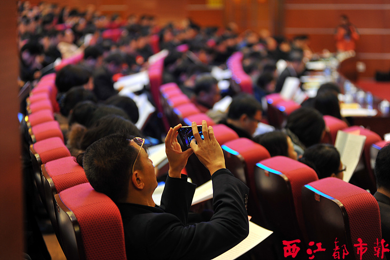 2月1日,一名政協(xié)委員用手機(jī)拍下會(huì)議現(xiàn)場。 本報(bào)記者 何鎏/攝