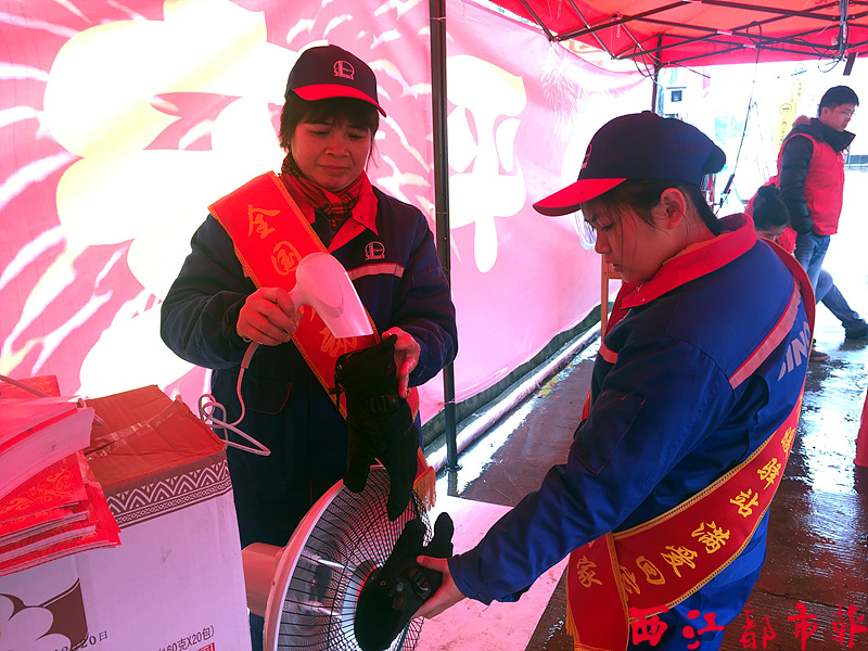 ????就在“摩托大軍”休息放松時,來自中石化梧州石油分公司的區級勞模李金蘭正在一旁忙碌著。她麻利地拿起吹風機,逐一吹干“摩托大軍”遞來的濕淋淋的手套。“這個吹風機是我們昨天剛買的,一定能派上用場。”李金蘭說,由于近期經常下雨,因此許多“摩托大軍”來到東出口春運服務站時,原本用來保暖的手套和口罩都濕透了,戴起來冷冰冰的。記者看到,每當吹干手套后,李金蘭還會為“摩托大軍”送上一副新的手套和口罩,讓他們可以在路上隨時替換。