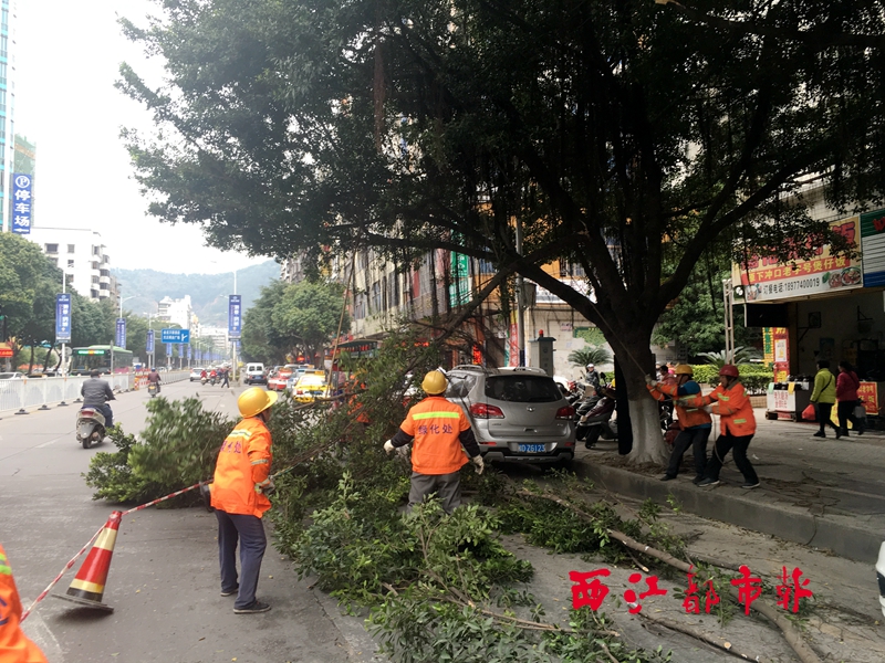 ????據(jù)悉,通過(guò)對(duì)綠化樹進(jìn)行修剪,能夠控制枝葉生長(zhǎng),并達(dá)到集中營(yíng)養(yǎng)供骨干枝葉旺盛生長(zhǎng)的目的。同時(shí)能夠保持植物的整潔美觀,消除路樹枝干掉落的安全隱患。 (西江都市報(bào)記者 謝韻/攝)