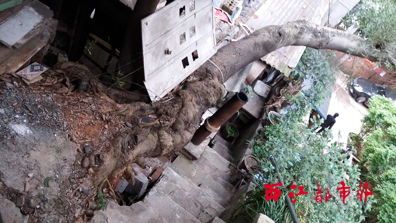 ????對此,富民街道辦事處表示,已派人到現場了解過情況,確實存在一定的安全隱患。但由于社區及街道方面均無相關的人力物力,也沒有專業人士和專用工具對大樹進行砍伐處理,因此社區已向上級部門反映相關情況,目前還在尋求有效的解決辦法。