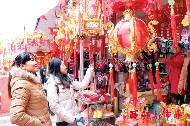 ??? 2月16日,在岑溪市區(qū)一家花燈店,市民正選購花燈。