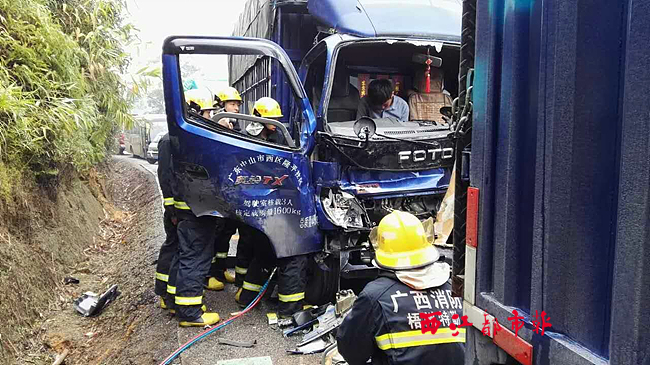 2月19日中午,一輛掛廣東號牌的箱式貨車,由藤縣太平鎮(zhèn)往梧州方向駛至省道323線蒼梧縣嶺腳鎮(zhèn)鴨母界路段時,追尾前面兩輛汽車。事故造成一人受傷、三輛汽車不同程度受損。事故發(fā)生后,當(dāng)?shù)亟痪⑾啦块T進(jìn)行了營救,傷者得以及時送院救治。通訊員 何明/攝