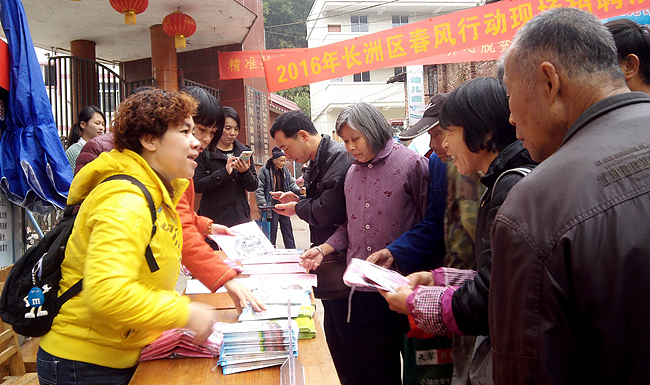 2月19日,市人社局在長洲區倒水鎮舉行“春風行動”專項招聘會,用工企業向村民介紹企業情況及用工需求。 陳可夫 攝