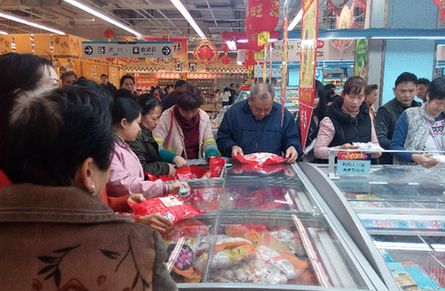 ????2月21日,記者走訪了市區各大超市,發現前來購買湯圓的顧客絡繹不絕,超市也準備了各種口味的湯圓供市民選購。在大潤發超市,記者看到多種品牌袋裝湯圓擺放在冷柜里,除了傳統的黑芝麻、花生、豆沙等餡料,還有巧克力、草莓、哈密瓜等新口味湯圓。市民劉女士在冷柜前細心對比選購湯圓,她表示,女兒23日要回學校上課了,她除了購買花生、芝麻口味湯圓外,還特意買了兩包女兒喜歡吃的水晶湯圓,元宵節一家人吃湯圓,慶團圓。