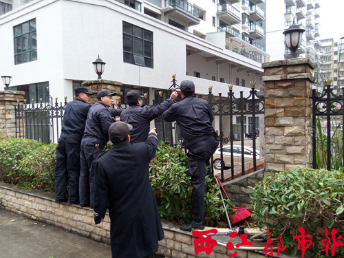 恒祥豪苑小區的業主告訴記者,就在剛才,有一伙來歷不明的人,拿著電鋸前來強行拆除鐵柵欄,業主不得已只好報警求助。“直到警察來了,那伙人才停手。”
