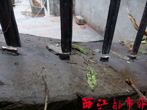 部分鐵柵欄根部已被鋸斷。