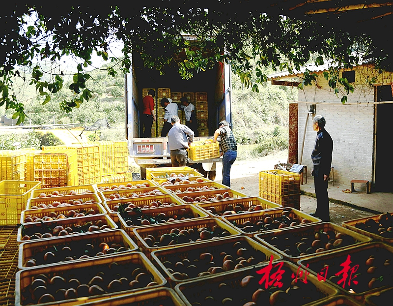 ??? 2月29日,在藤縣永茂果業(yè)種植專業(yè)合作社,工人將茂谷柑裝車外運。