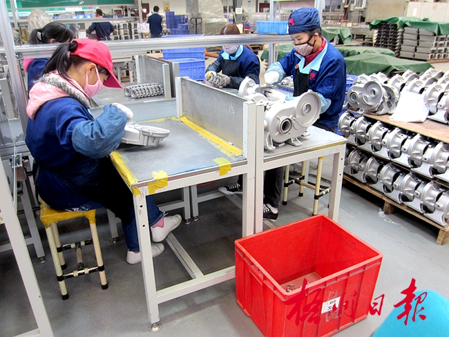 在梧州進口再生資源加工園區鴻圖精密壓鑄有限公司生產車間,工人們正打磨剛下線的鋁合金汽車零部件。該公司是我市再生資源產業的龍頭企業之一,去年生產經營各項指標均比上一年翻一番。祝琳 攝
