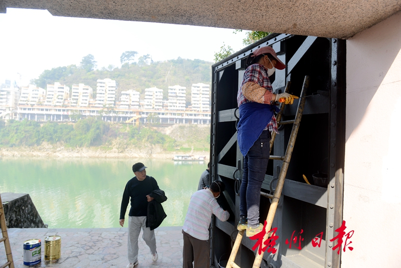 ??? 3月2日,在梧州市區(qū)河東防洪堤中山碼頭,工人正為防洪閘門刷防銹漆。 近日,市堤防管理部門對河西、河東片區(qū)的防洪設施進行養(yǎng)護,檢查防洪閘門止水膠以及轉(zhuǎn)軸,發(fā)現(xiàn)問題及時采取措施維修,保障閘門在汛期正常運行。