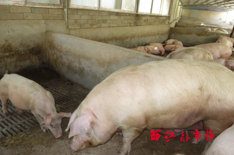 “豬王”的個頭比豬圈里的普通生豬明顯大很多。