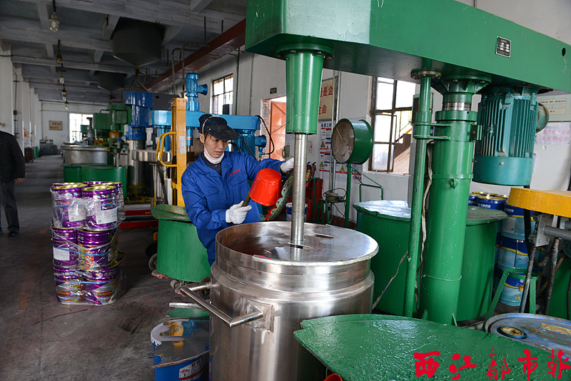 ????在萬秀區的扶持下,近三年來,廣西梧州龍魚漆業有限公司不斷加大技改力度,在技改項目上累計投入超400萬元。 (麥朝樞 覃祚干 攝影報道)