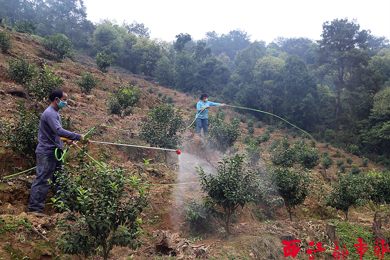 ????3月7日,在長洲區倒水鎮路垌村,村民正在給砂糖橘樹噴灑農藥。去年,長洲區共投入財政專項扶貧資金31.5萬元,采購無毒砂糖橘苗4.39萬株及配套農藥化肥一批,發放給建檔立卡的貧困戶,發展砂糖橘種植660多畝,受益人數近700人。目前,受惠種植戶正抓緊春種時節護理果樹。 陳可夫 蒙曉東 攝影報道