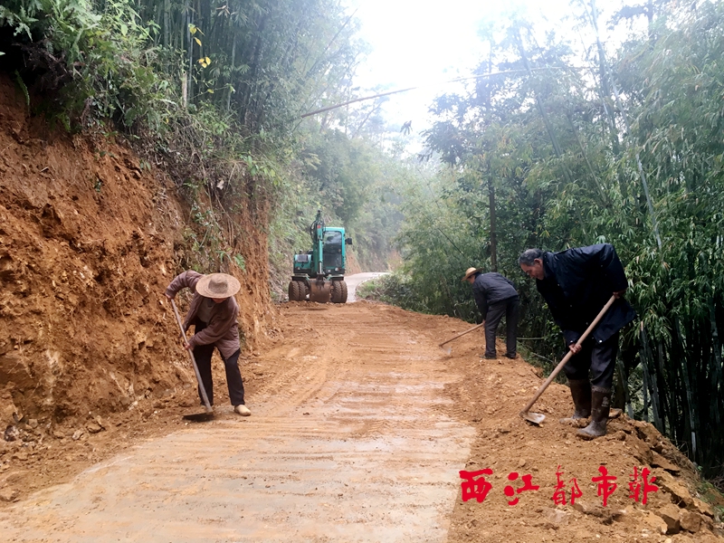 ??? 日前,在岑溪市水汶鎮(zhèn)大衛(wèi)村禾倉(cāng)至志振的公路,村民正在填路肩,方便車輛和村民通行。