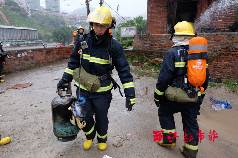 明火熄滅后,消防官兵在涉事民宅內(nèi)搜救出多個液化氣罐。?何鎏/攝