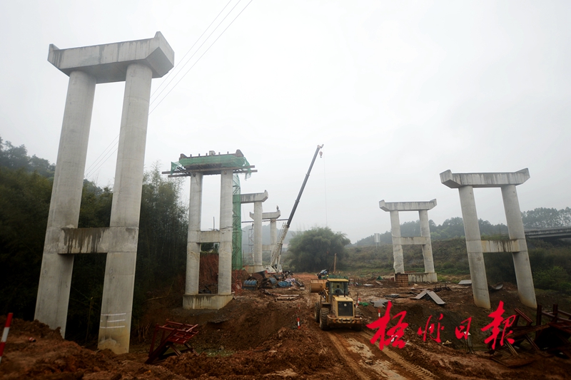 ??? 3月16日,梧(州)柳(州)高速公路項目一標段倒水互通立交正在進行橋墩施工。