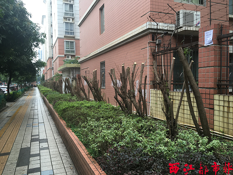 位于冬湖路梧桐新苑小區(qū)外的夾竹桃,經過修剪后只剩下一米多高的枝干。