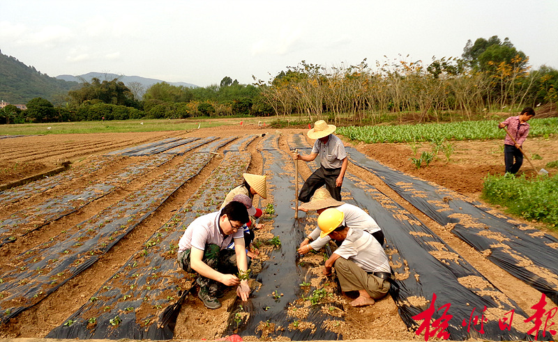 ????3月20日,在岑溪市歸義鎮(zhèn)謝村,中恒植物藥業(yè)科技有限公司技術(shù)人員正指導(dǎo)村民種植苦玄參種苗。