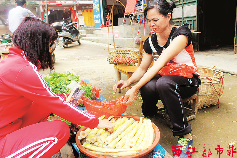 ????3月20日,岑溪市波塘鎮(zhèn)的一名顧客正在選購(gòu)野生山蒲筍。