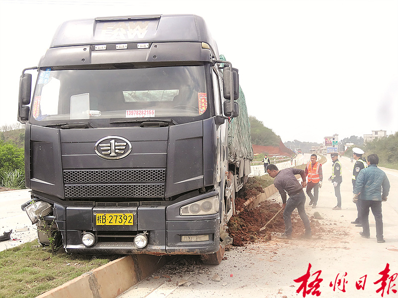 ????據(jù)事故現(xiàn)場(chǎng)民警介紹,當(dāng)天上午10時(shí)30分,一輛從南寧開(kāi)往梧州方向的外省大貨車至上述路段,因突然失控先是與一輛同向行駛的寶馬車發(fā)生追尾碰撞,?后司機(jī)往左邊急打方向,至失控大貨車沖上路中間花基分隔帶,撞爛分隔帶10多米,事故導(dǎo)致車輛損壞,幸無(wú)人員傷亡。 李偉明 攝