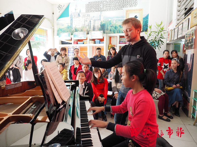 ?3月27日下午,西班牙著名鋼琴家恩瑞克·巴戈利亞在來梧演出之余,來到市內(nèi)一家琴行,通過現(xiàn)場示范演奏和講解,對小學員進行指導。恩瑞克·巴戈利亞曾在西班牙和國際上的鋼琴比賽中獲得多項大獎,并作為獲獎選手到世界各地進行巡回演出,包括在中國國家大劇院、上海東方藝術中心演出。 西江都市報記者 陳健新/攝
