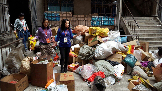 擔心石婆婆改主意,社區發動全體社區工作人員及廢品收購站的老板來到石婆婆家中,所有人員集體行動幫助石婆婆搬運屋里的垃圾出來,把能賣的現場賣掉,不能賣的現場清理掉。全體社區工作人員整整花了兩個多小時,才把石婆婆收藏的垃圾徹底清理掉,清理了垃圾的房子瞬間寬敞明亮了許多。