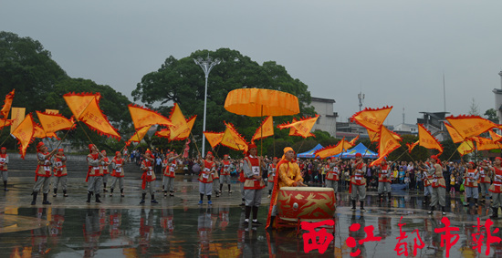 ????“天王帶你鬧王城”大型表演從9時(shí)開(kāi)始,首先舉行“圣兵迎客”,200多名太平軍身著戎裝迎接各路賓朋的到來(lái),接著舉行“天王祈福”。祈福儀式組織游客參與,大家用福包和小葫蘆做成祈福道具,形成千人祝福的盛大場(chǎng)面。