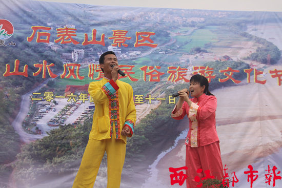 4月9日,原生態的疍家水上民歌對唱在藤縣石表山休閑旅游風景區上演。??????黃群禮/攝
