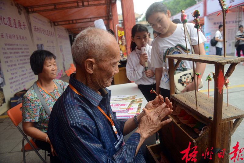 4月8日,在龍母廟景區,70歲的蔡師傅制作面塑。當日,蔡師傅從云浮市來梧參加非物質文化遺產展示活動,為市民游客展示面塑手藝。 李煜榮 攝