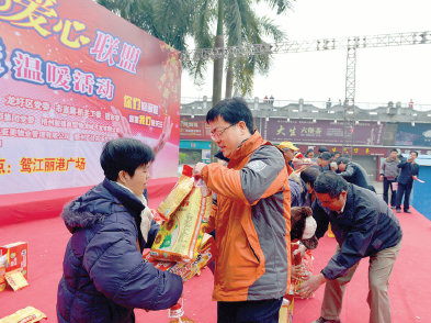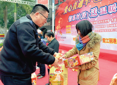 你們的困難就是我們的牽掛。為推動和諧社會的建設,踐行黨的群眾路線教育實踐活動,2月6日上午,由梧州日報社黨委、萬秀區黨委、長洲區黨委、龍圩區黨委、市直屬機關工委、團市委主辦,萬秀區愛心聯盟、神冠控股(集團)有限公司、中恒集團黨委、梧州毅德商貿物流城開發有限公司等愛心企業協辦的“愛心直通車——我們一起送溫暖”之“情系村(居)送溫暖”活動萬秀區站啟動儀式在鴛江麗港廣場隆重舉行。當天,愛心單位為萬秀區的孤寡老人、留守兒童和困難群眾代表送上了大米、面餅、食用油、臘腸等愛心物品。