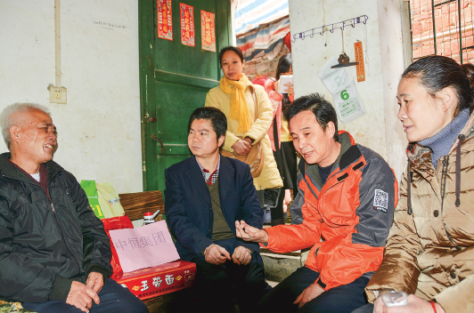 當天,萬秀區副區長潘雄森、中恒集團企業代表、梧州日報社黨委副書記劉忠云以及錢鑒社區的工作人員,帶著大米、糧油等慰問品,來到了社區五保戶甘世容10 平方米大的家中,愛心人士的一聲聲問候使甘世榮嘴角揚起了微笑。