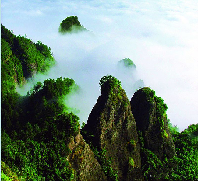 ????除了飛來石,站在獅山最高峰岑山頂,看到四面山峰連綿起伏,丹峰聳立,移步別景。你看,觀音峰、夫妻石、飛鳳山、田螺石、貓兒石、官帽石、馬鞍石、麒麟石、猴子石、凈瓶石、指天石、一線天等等,一山總比一山奇,一山又比一山幽。景點之多,吸引不少游客慕名而至。聽說外地一名大學教授曾五次登上獅山呢,其實他是在尋找獅山的美。