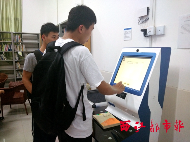 ????據(jù)悉,這臺機器不僅是借書機,也是還書機,學生還書時只要將書本放到機器的識別器上,等機器識別圖書后,再將圖書放在還書架上,就輕松完成還書了。