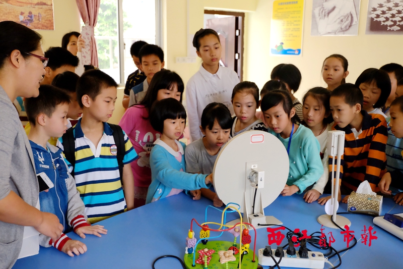 在學(xué)校參觀時(shí),不少小記者學(xué)員都被第一次見(jiàn)到的心理輔導(dǎo)設(shè)備吸引住了。