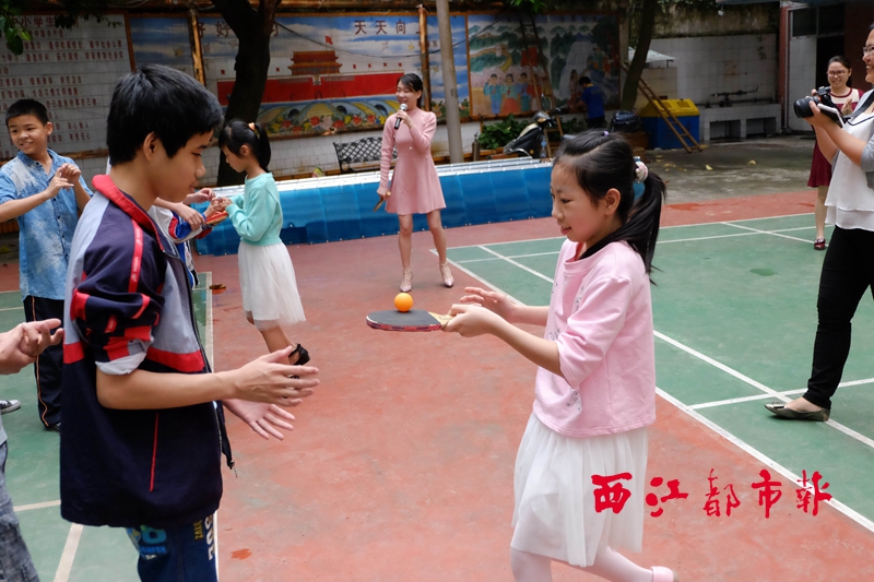 特教學(xué)校的學(xué)生和小記者學(xué)員一起做游戲。