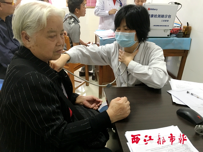 大塘社區衛生服務中心的醫生在給老人做相關身體檢查。(西江都市報記者 李玉瑩/攝)