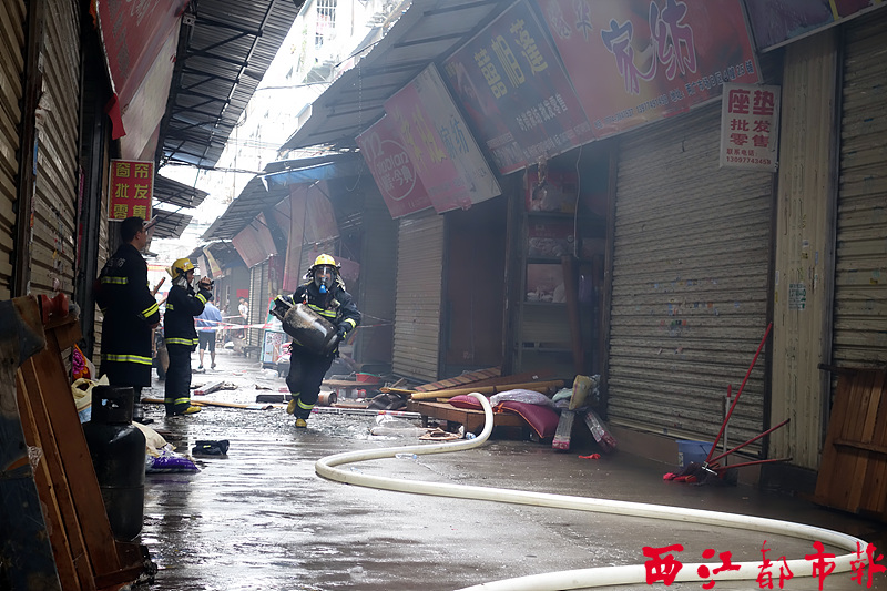 ????當天上午11時03分,現場的明火被撲滅。據一名參與救援的消防員小李介紹,考慮到起火商鋪二層的火勢太大,他們需要跑到對面商鋪等高處利用水槍控制火勢。對面商鋪內也是存在雜物亂堆的現象,各種貨品疊放起來的高度比小李還要高,這在一定程度上給救援工作帶來了困難。不過,經驗豐富的消防人員還是迅速清理出一條救援通道,以開展滅火工作。