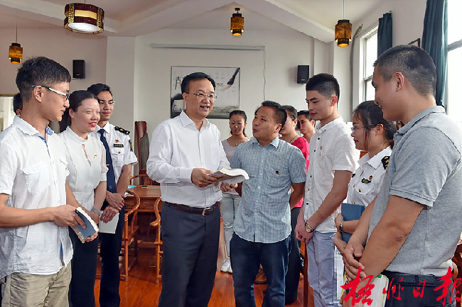 ??? 5月4日,市委書記、市人大常委會主任黃俊華到2016年梧州青年讀書季“青春嗅書香,成長更芬芳”讀書分享沙龍,與青年代表交流,鼓勵大家多讀書、讀好書。 孟亞西 攝
