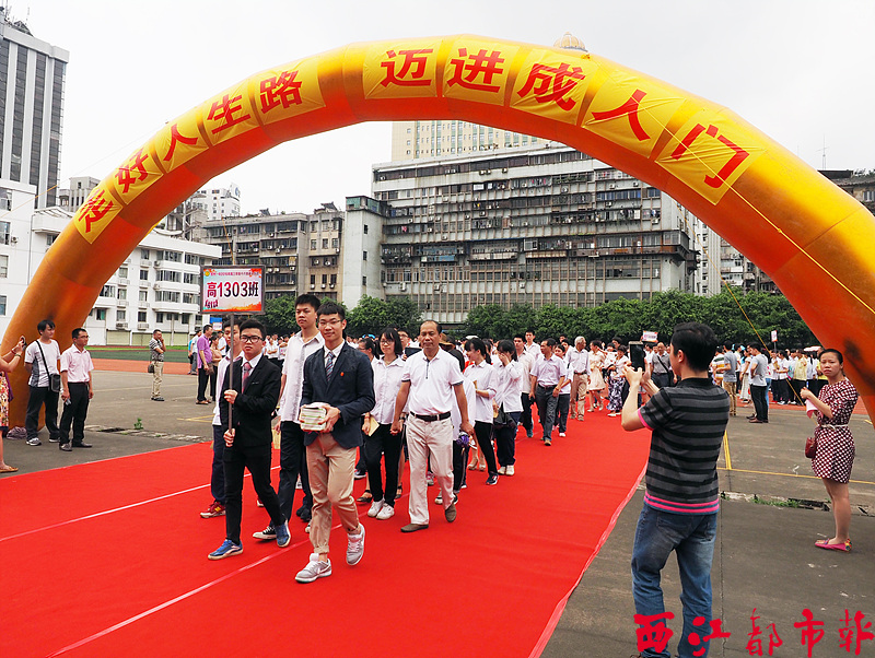 梧州一中高三學生在班主任和家長的陪同下邁進成人門。西江都市報記者 陳健新/攝