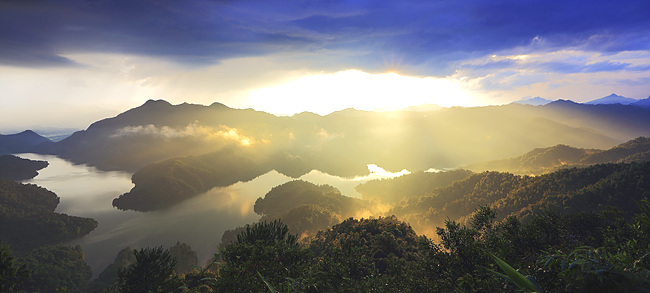 ????要看湖的全景,則要走另一條線路,要沿長坪瑤鄉入山公路驅車7公里,到達茶山湖的制高點才能看到。現在這里已經建起了觀景臺,觀景臺系挖山填坡支鋼架而成,這里是觀茶山湖的絕佳地點,可同時容納上百人。在這里雖然還不能完全看見茶山湖的全貌,但茶山湖最精華的部分已現眼前。在此看湖景有兩種看法:一是早上看霧海。每年4至10月,茶山湖早上很容易起霧,特別是前晚下過雨的日子,山間草木濕潤,早上氣溫稍高,水汽便升騰起來,形成霧氣。霧氣變化無常,時而靜垂湖面,時而翻騰倒海,時而厚薄更替。有時早上到達觀景臺時,湖中一絲霧氣都沒有,可千萬別就此返程,說不定霧氣一會兒就升騰起來,這種情況常常發生。運氣好的,會遇到佛光奇觀。太陽升起來時,在光線和濃霧的相互作用下,一個七彩光環出現在附近的山上,攝影者的身影置于其中,人動影隨,變幻無常。二是黃昏看落日、晚霞。太陽落山前兩三個小時,西邊云層通常變黃變紅,陽光常在薄云處穿透云層,一束束大小光柱打在山嶺上,灑在湖水中,把湖水染得金黃一片。太陽落山不久,晚霞升起,或紅、或黃、或藍,五彩紛呈。晚霞不斷變換身姿,呈現出種種動物形狀和美麗圖案。 |