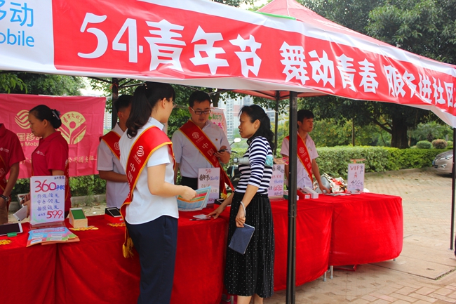 梧州移動青年志愿者進社區提供業務咨詢服務。
