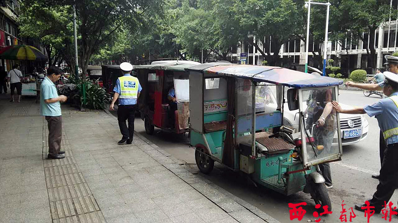 ????5月5日,在珠山地下商場對開路段,執法人員依法查處非法營運的三輪車。