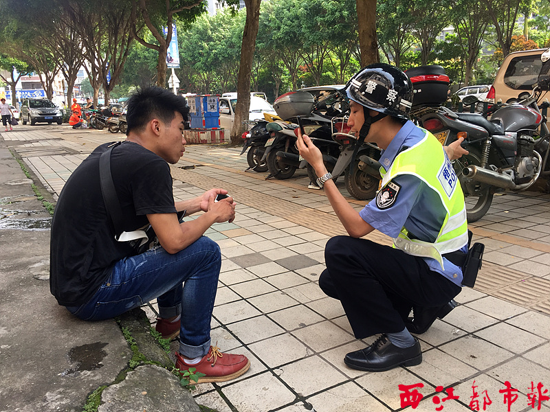 民警到場后,一邊向曾暈倒路邊的男子詢問事情經過,一邊進行記錄。西江都市報記者 楊珊/攝