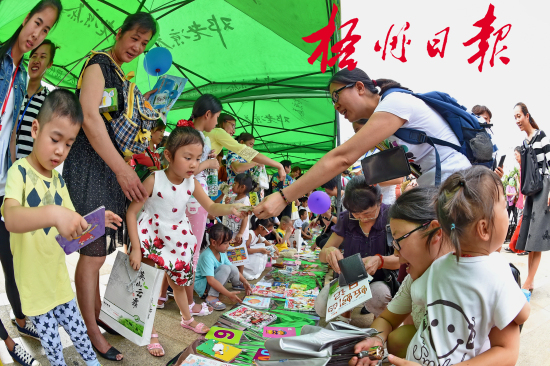 ????5月7日上午,小朋友在“圖書集市”上選購圖書。 當(dāng)日,恒祥豪苑幼兒園、翠薇居幼兒園聯(lián)合在市政廣場開展“我愛讀書 快樂成長”活動,以圖書交流、圖書出讓的親子閱讀的形式,為孩子們搭建一個交流分享的平臺,提高家長對早期閱讀重要性的認(rèn)識,改善家庭的閱讀環(huán)境,養(yǎng)成良好的閱讀習(xí)慣。