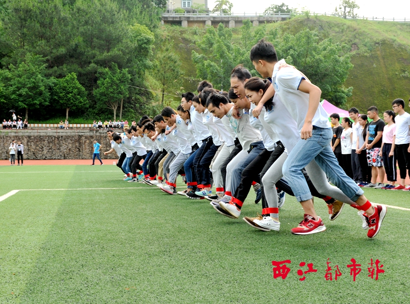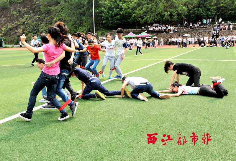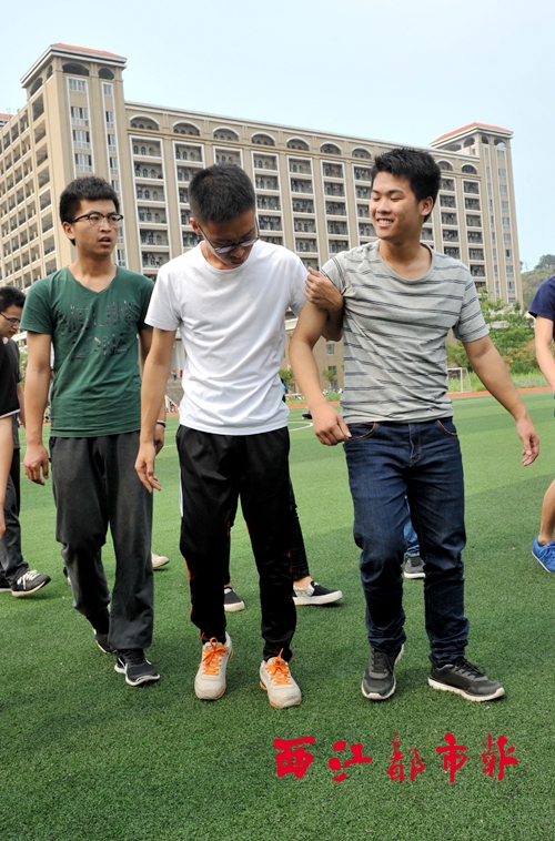 ????30名隊(duì)員腿綁在一起共同向前奔跑,其難度可想而知。由于配合度不高、協(xié)調(diào)性不好等原因,不少隊(duì)員在中途摔倒,甚至被拖著向前走,手掌和膝蓋被擦傷。然而,沒有一組隊(duì)伍提出放棄。賽場(chǎng)上,隊(duì)友們相互扶持;賽場(chǎng)下,拉拉隊(duì)高聲打氣。青春,是遇到困難不服輸?shù)挠職狻?/p>