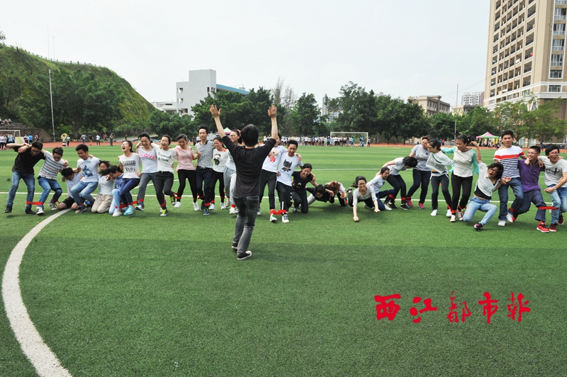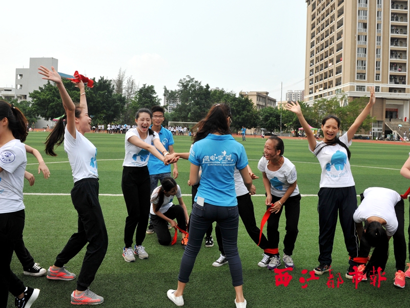 ????據(jù)梧州學(xué)院信息與電子工程學(xué)院團(tuán)委書記李寧介紹,梧州學(xué)院30人31足比賽原本屬于信息與電子工程學(xué)院的戶外素質(zhì)拓展活動(dòng),由于去年受到學(xué)生的歡迎,今年被擴(kuò)大為全校性活動(dòng)。比賽的規(guī)則是每支參賽隊(duì)伍由30人組成,用綁腿帶與相鄰隊(duì)友相連,在45米的賽場(chǎng)競(jìng)技,用時(shí)最短者為勝。